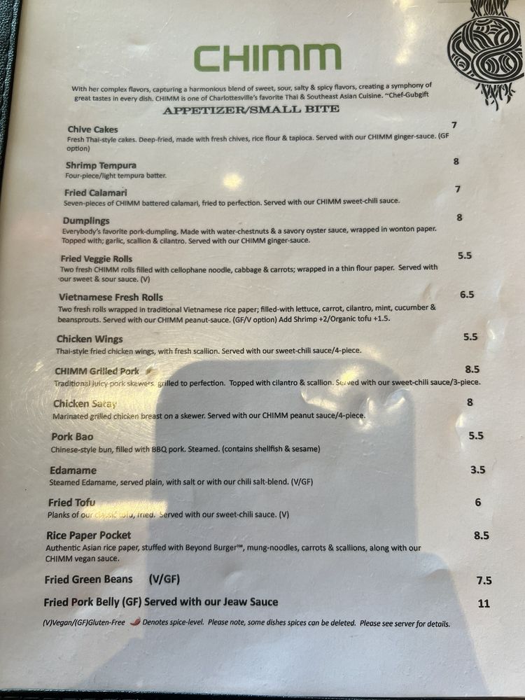 Chimm, a Vietnamese-Thai restaurant located in Charlottesville, VA, offers a diverse menu with options for pescatarians and vegans. Known for its flavorful dishes like the Fried Rice Kimchi and Kimchi Drunken noodles, Chimm promises a unique dining experience. Customers rave about the friendly staff, authentic Thai flavors, and clean interior. The Thai Noodle Bowls, including the Tom Yum Noodle Soup, are a must-try for noodle lovers. The restaurant also provides various amenities such as outdoor seating, reservations, and catering services. Chimm's commitment to quality ingredients and excellent service makes it a standout choice for those craving delicious Vietnamese-Thai cuisine. Whether you're a fan of traditional Thai dishes or looking to explore new flavors, Chimm is sure to impress with its tasty offerings.