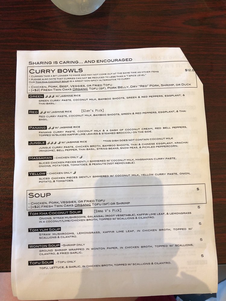 Green curry paste, coconut milk, bamboo shoot, string bean, red bell pepper, eggplant, & Thai basil. CONTAINS FISH SAUCE, NOT removable. Naturally GLUTEN FREE.