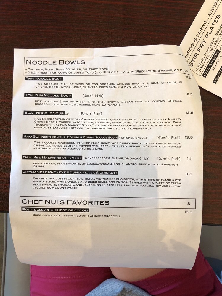 *** NO refunds or exchanges***Yen Ta Fo aka Pink Noodle Soup: One of Thailand's most favorite noodle bowls. Chicken broth, wide noodles, morning glory, bean sprout, shrimp, calamari, fish balls, pork, fried tofu, fermented yen ta fo pink sauce. Topped with fried garlic, cilantro, and fried wonton crisps (contains gluten)